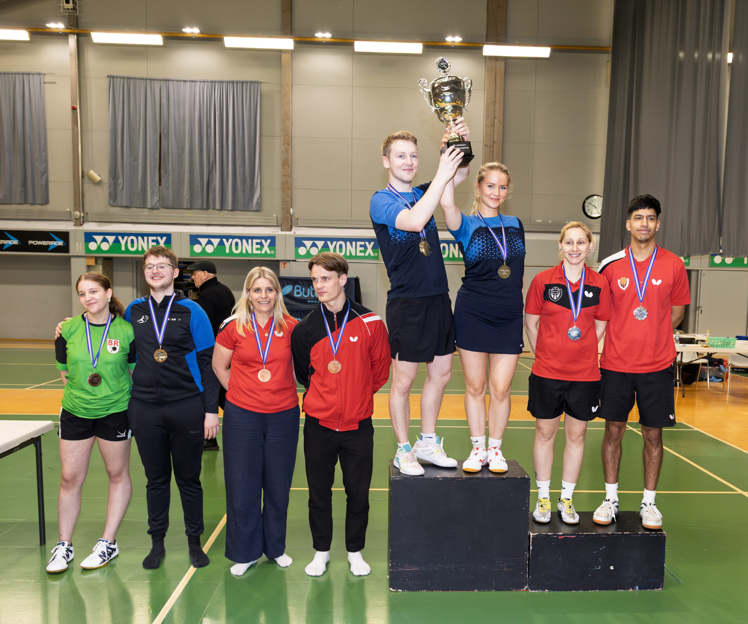 Magnús Gauti og Sól fögnuðu sigri í tvenndarleik og sigruðu Inga Darvis og Nevenu 3-0 í úrslitaleik.